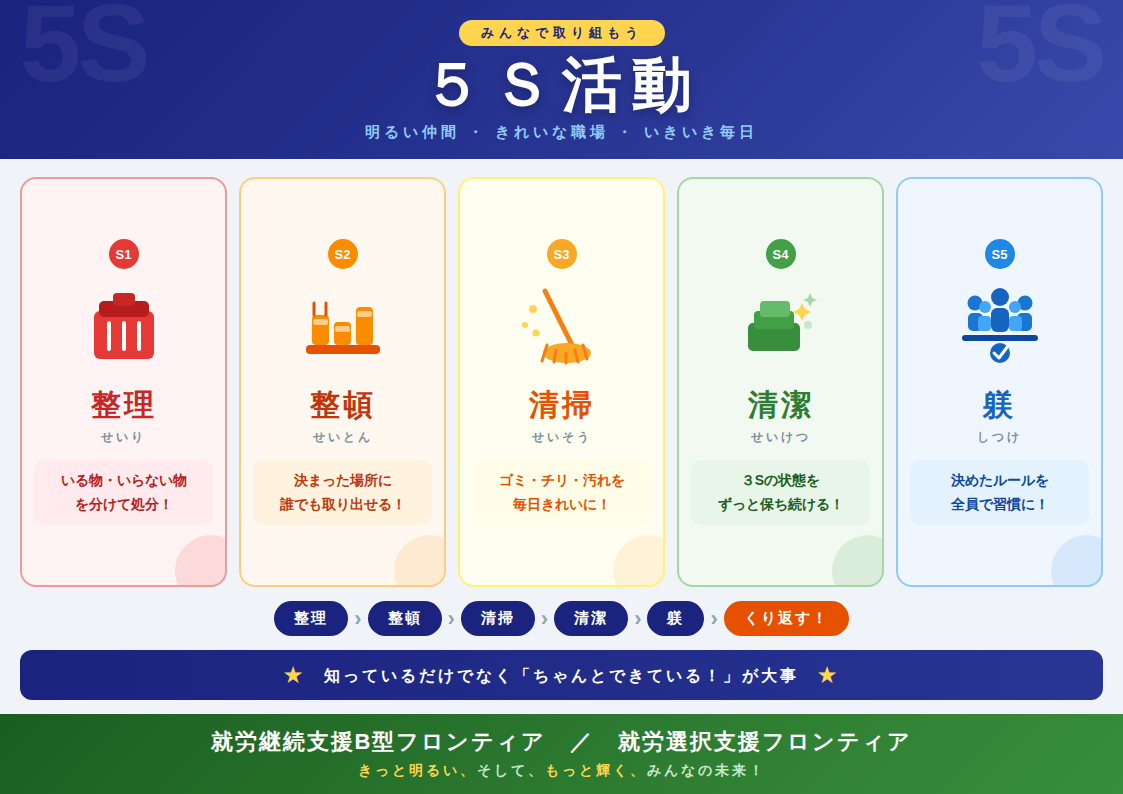 みんなで取り組もう「5S活動」✨💡 5S活動は「やらされるもの」ではなく、「自分たちのための活動」